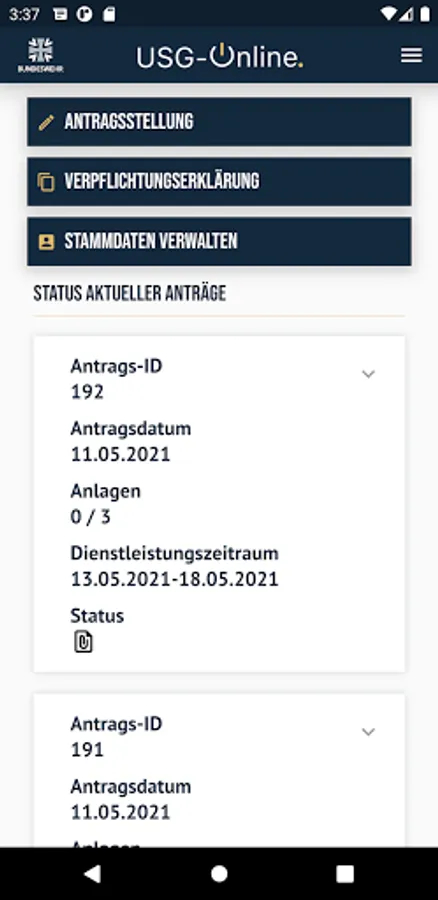 USG-Online is the modern and secure contact for reservists to the maintenance department in the BAPersBw and is your mobile companion for all financial matters relating to the Maintenance Assurance Act (USG).