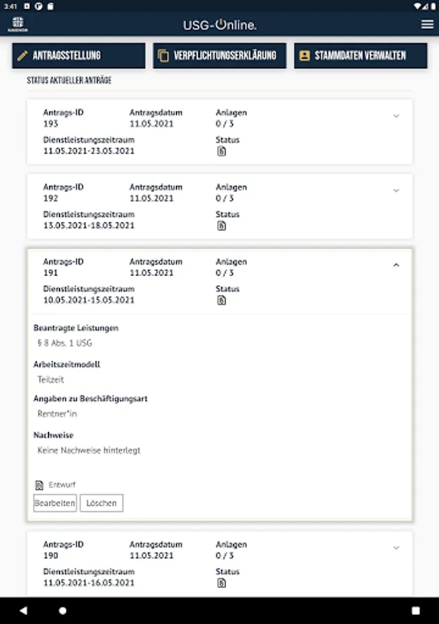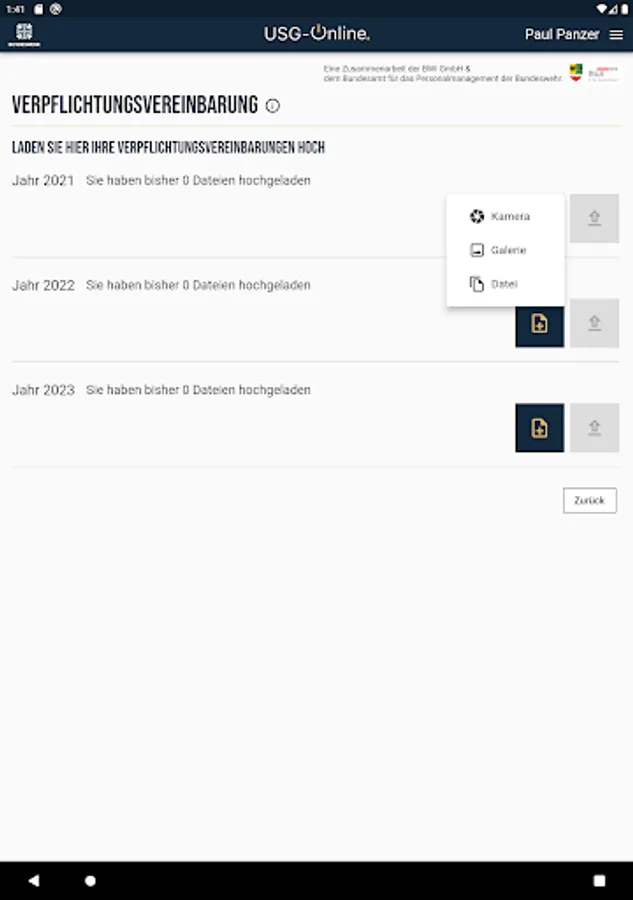Receive information about the benefits procedure and easily submit your application for USG benefits. You can add the required evidence to your application immediately using the corresponding photo or upload function.