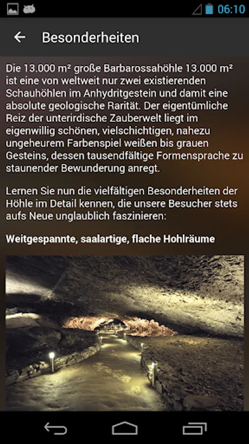In our app you will find information about Barbarossahöhle, a virtual insight with 360 degree views, events in the cave with booking directly in the app and more.