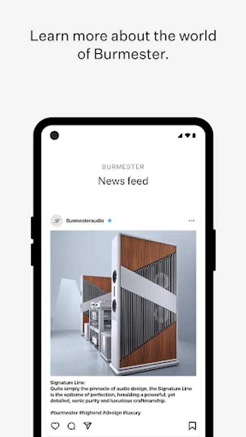 Select your car and the optional Burmester sound system to explore the appropriate features and highlights. Enjoy the performance of the Burmester sound systems with our integrated music sample and even more with our regularly curated Apple Music playlists for various genres. Via direct access to our official Instagram channel you can learn more about the world of Burmester.
