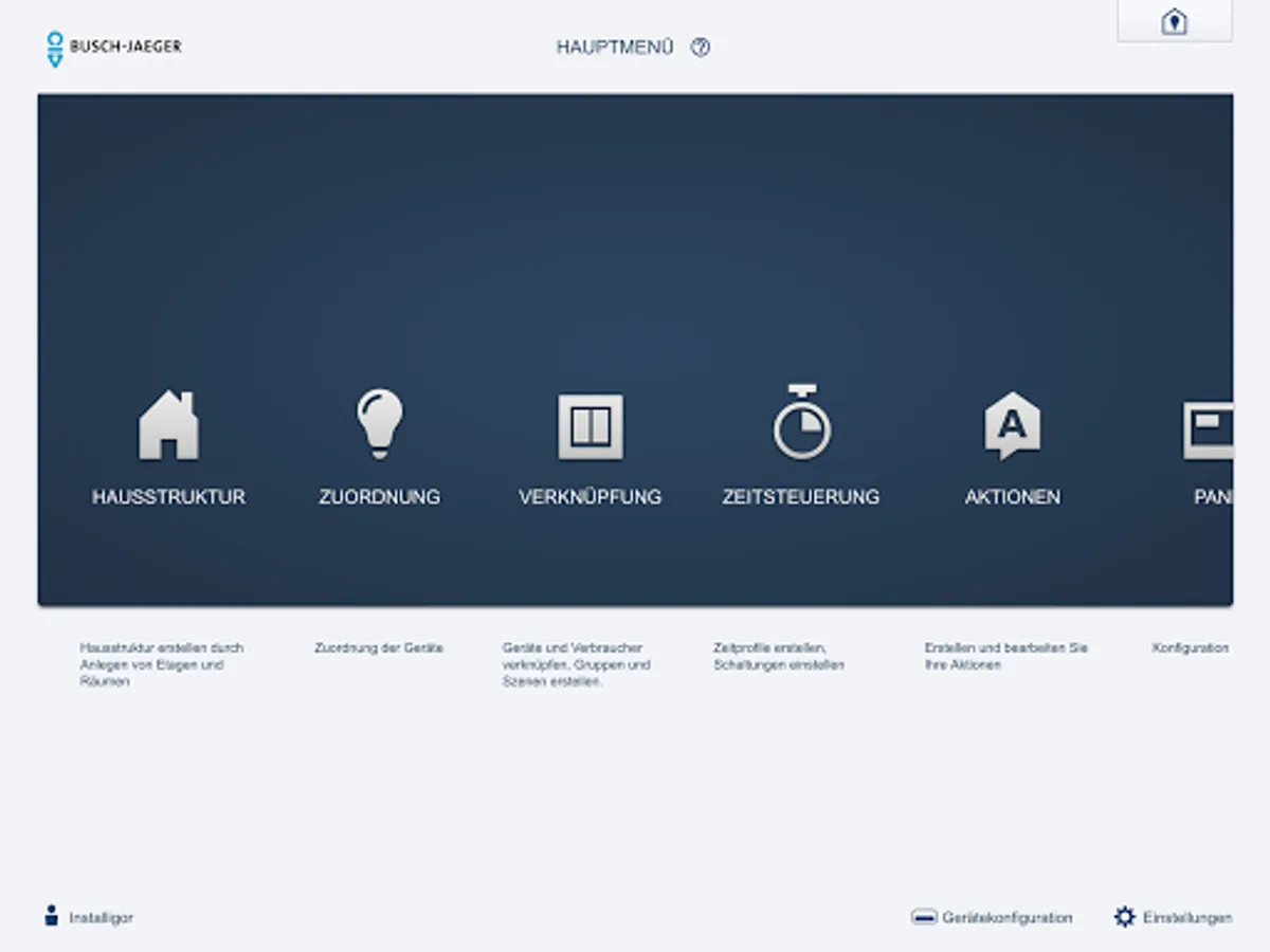 To use the geofencing function, the firmware of the system access point must be updated to version 2.1.4. This is provided as an automatic software update is available if you log in as a user with Installaterusberechtigung on the free @ home user interface. Alternatively, the new firmware can be downloaded from www.busch-jaeger-katalog.de down.