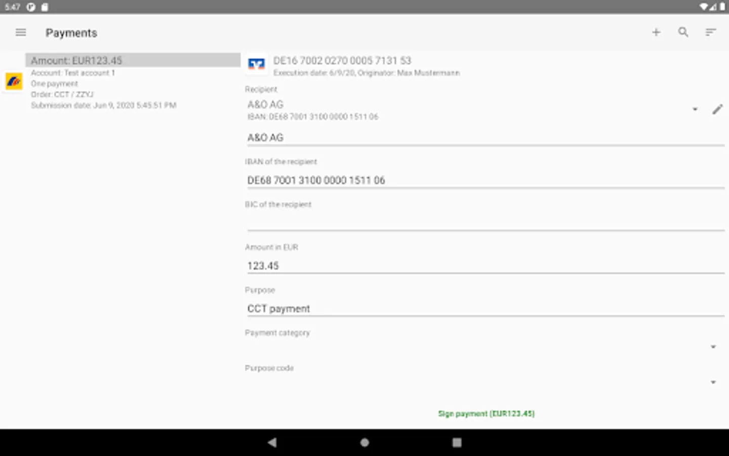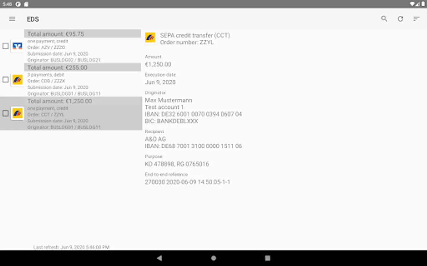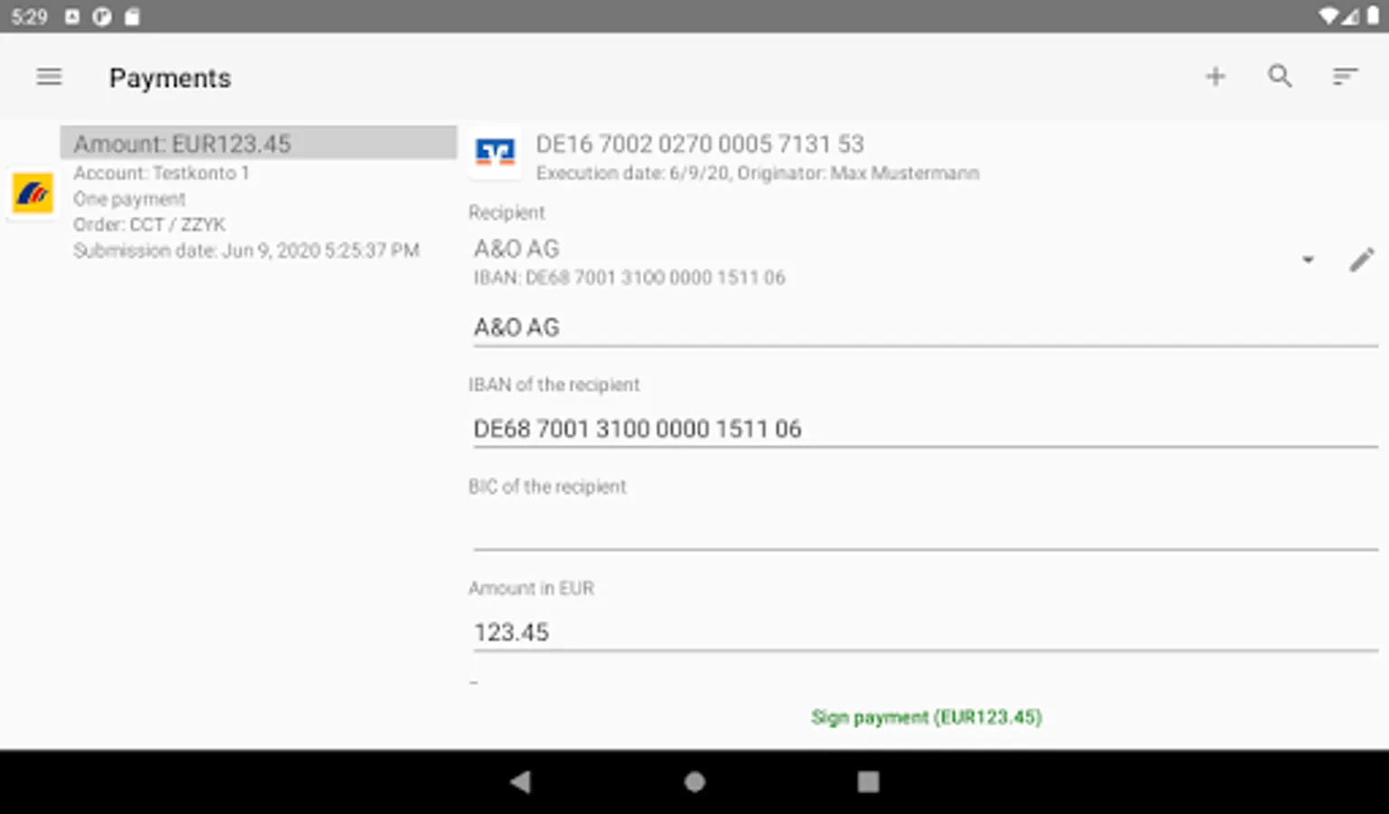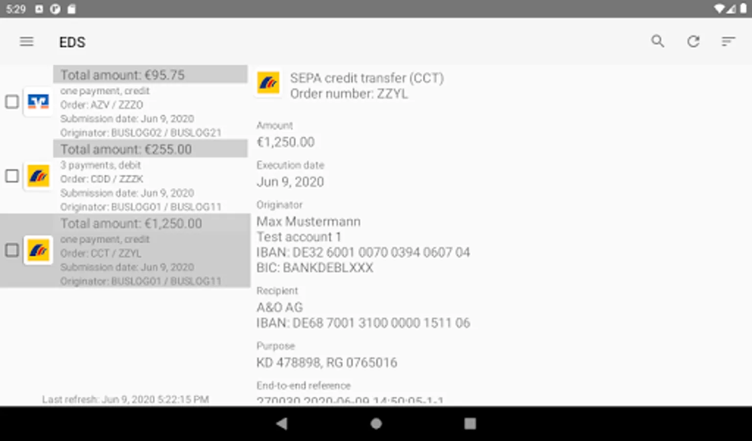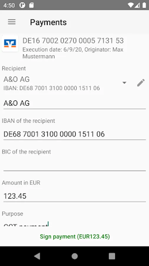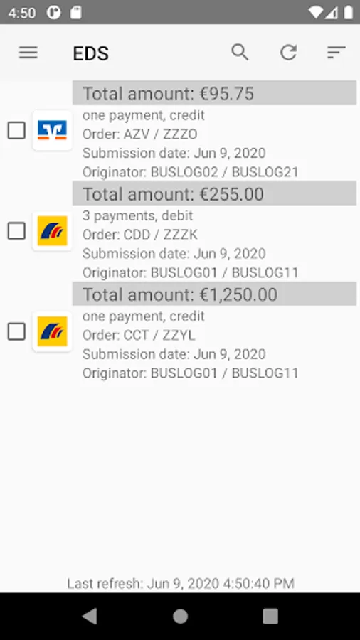 With BL Banking for Androidâ„¢, EBICS access can be used for fetching a list of orders from the bank for which a signature can be made or that can be declined. If it is supported by the bank, the payment details of the orders can also be viewed. The displayed orders can be signed or canceled.