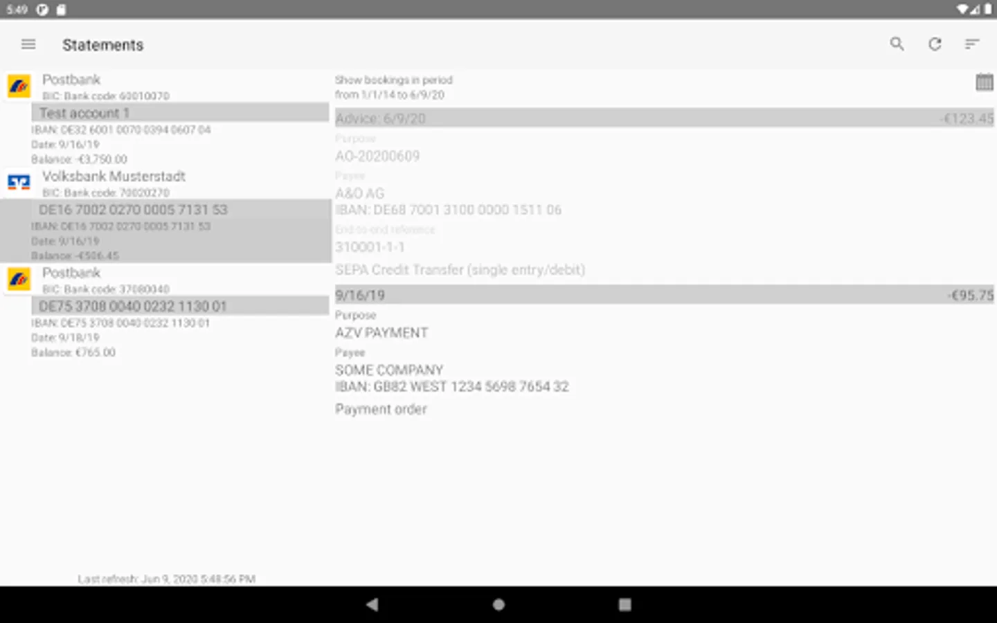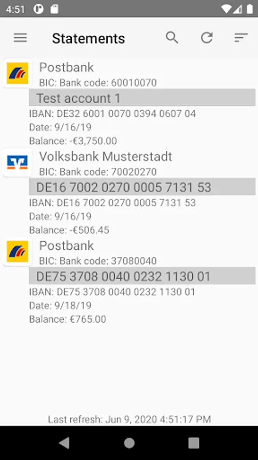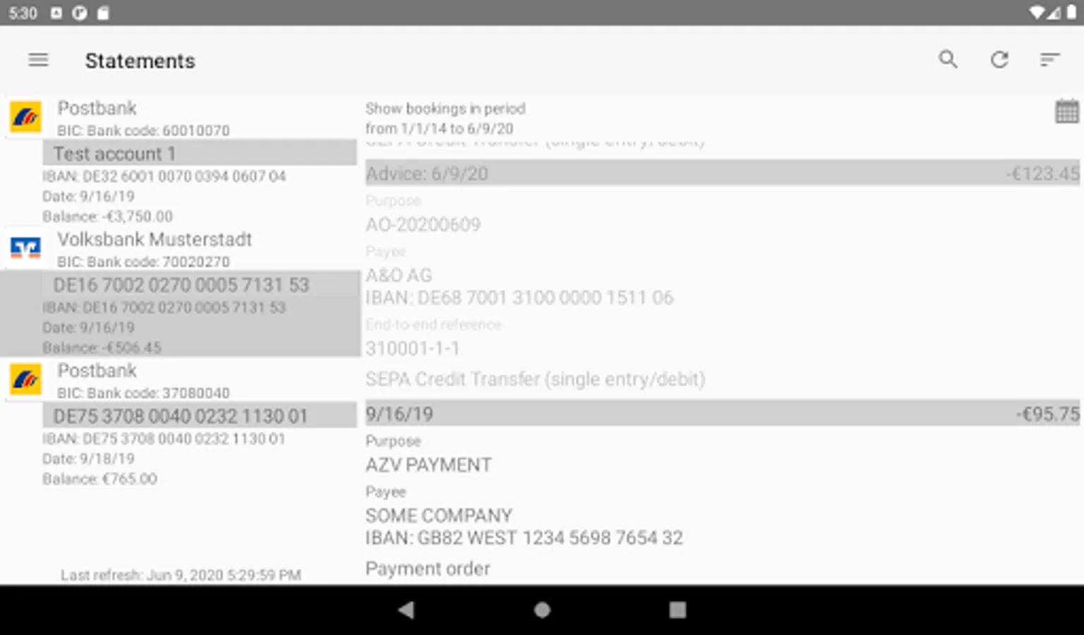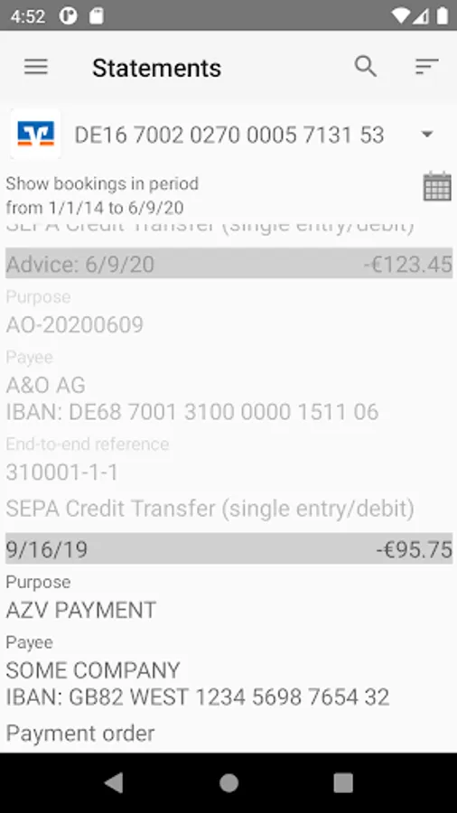 The application can also be used to pick up and display account statements and bank advices. Here MT940 or MT942 and camt.053 or camt.052 are supported.