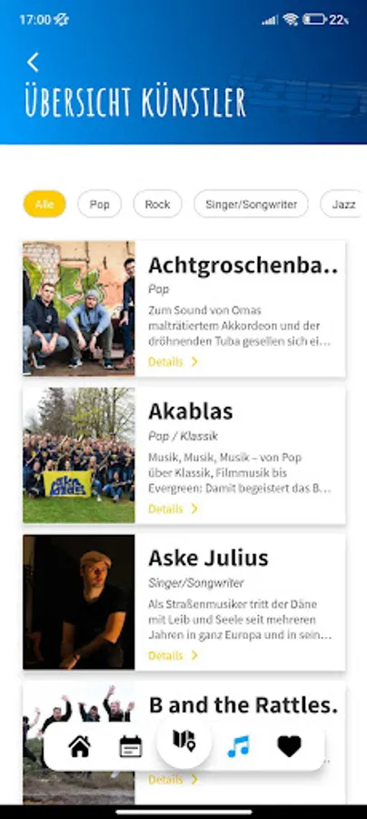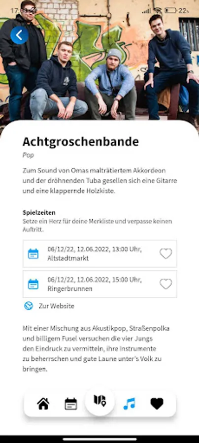 So that you don't miss anything on the weekend, you will find all locations and the program offered there, background information on the artists and the varied range of food trucks in the app. With just a few clicks you can save your favorites and put together your individual, unforgettable weekend program.