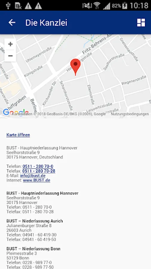 Of course you have this application always have a direct line to the office. All contact details incl. Convenient Directions are available therein. If you phone number or email address times do not have on hand, simply refer to the app.