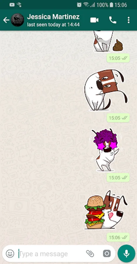 2. Open WhatsApp, tap the smiley icon in the bottom left corner and then tap the sticker icon in the bottom. Your sticker category will appear in the panel (after the clock and star icons). Its super simple!