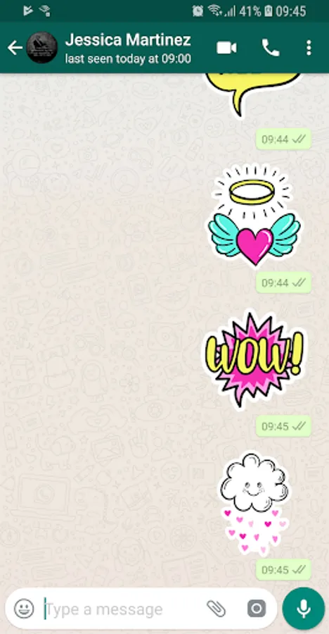 2. Open WhatsApp, tap the smiley icon in the bottom left corner and then tap the sticker icon in the bottom. Your sticker category will appear in the panel (after the clock and star icons). Its super simple!