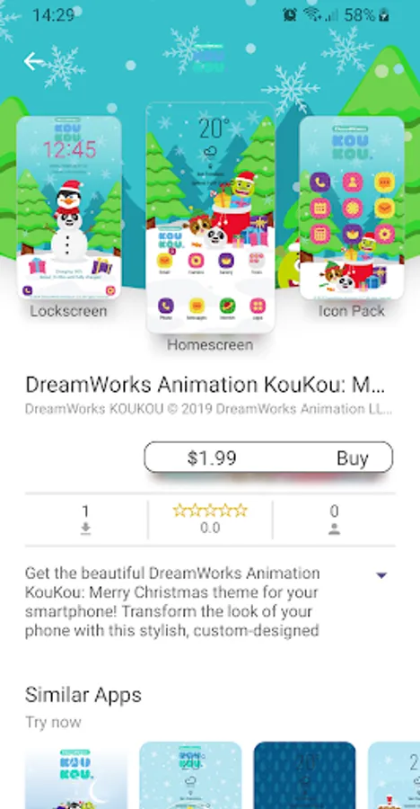 DreamWorks Animation KouKou Themes Store is a full-featured customizable launcher for Android phones.