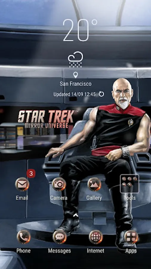 Get the beautiful Star Trek: Mirror Picard theme for your smartphone! Transform the look of your phone with this stylish, custom-designed homescreen and its Star Trek motives. It has: