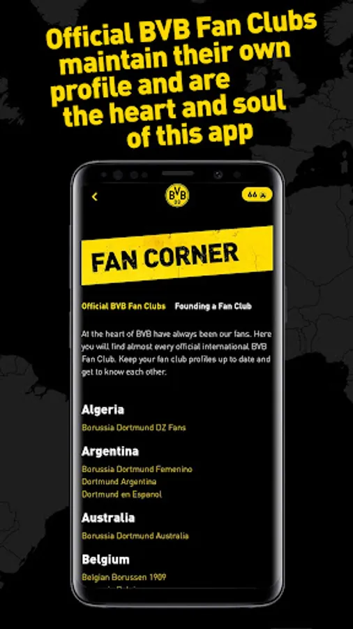 Every official international BVB Fan Club will have the possibility to create its own profile. Introduce yourself to the community, let them know what makes you special, and invite newbies to upcoming events.