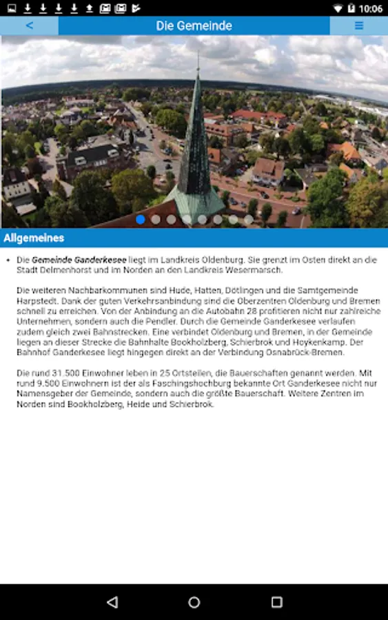 With the official GANDERKESEE app provides detailed information on the town, a clear Rathaus-guide, useful information about sights, interesting cultural, recreational and sports facilities, a regional business directory and a comprehensive Medical staff as well as current news and events. Whether you use the app as citizens, new citizens, guest or as a contractor or freelancer - you are always up to date.