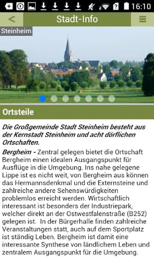With the official Steinheim-App provides detailed information about the city, a clear Rathaus signpost, useful information about sights, interesting cultural, recreational and leisure facilities, a regional business directory and a comprehensive Medical staff with current news and events. Whether you use the app as a citizen, new citizen, guest or as entrepreneurs or freelancers - you are always up to date.