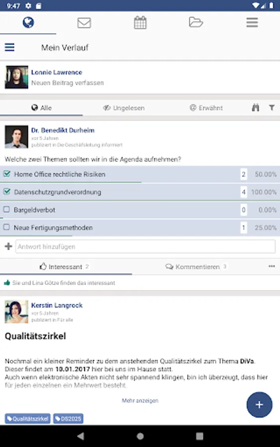 In addition to digital cooperation and communication with BVMed and within your committees and departments, "My BVMed" offers, for example, the possibility of working on the majority of papers, statements, articles and other publications to be coordinated in terms of content quickly, easily and together.