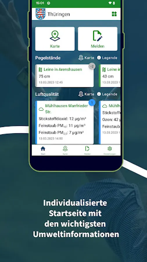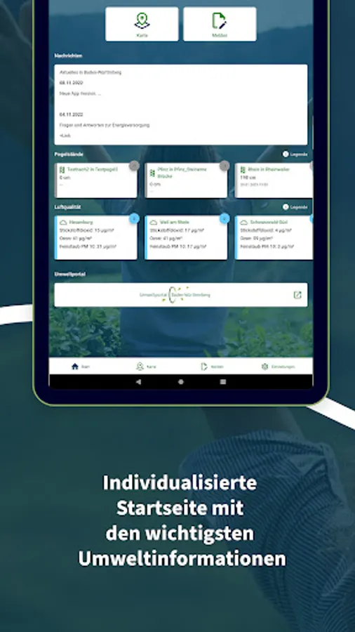 The My Environment app provides you with measured values for air quality, water levels and environmental data from the areas of flooding, traffic, energy, etc.