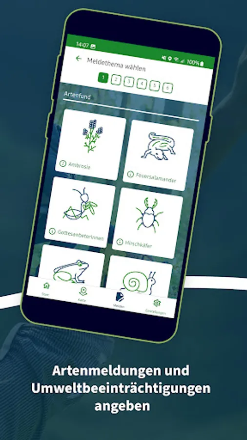 • You can also support species protection by reporting the location of invasive animal and plant species. Identification aids are available to identify the species.