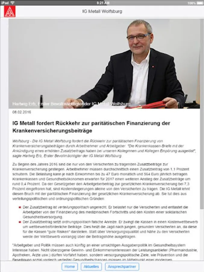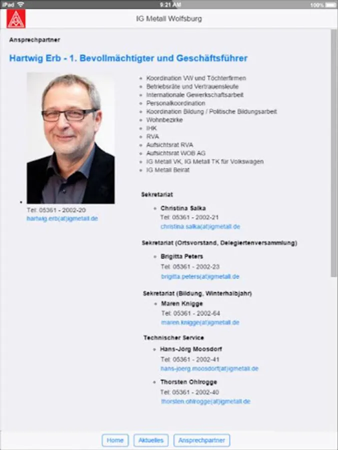 The app is used to support the administrative offices of IG Metall Wolfsburg and to reduce copy and print costs.