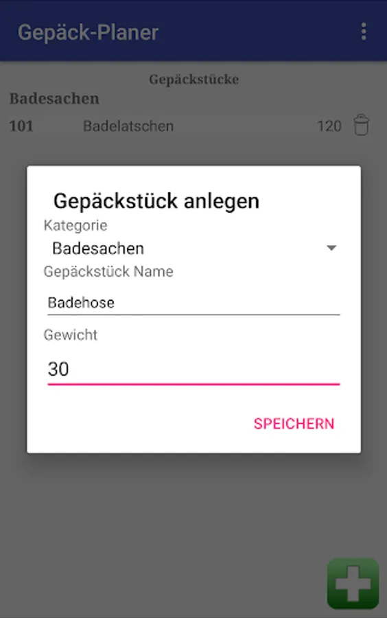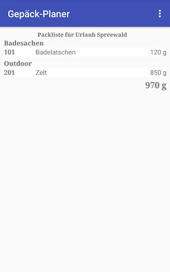With this app it is possible to create and weight all available luggage in categories. This makes it possible to gram-exactly plan the next trip and the necessary luggage for it.