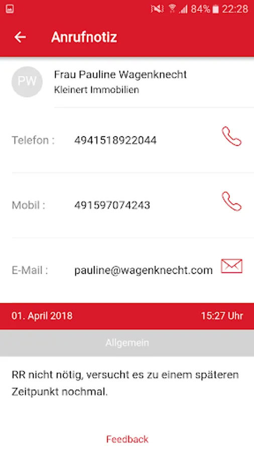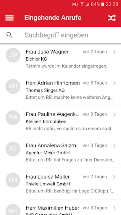 - The call is received, you can view all the important calls and make calls directly to request the caller with one click. If desired, we provide the caller also by the hall through to your mobile phone.