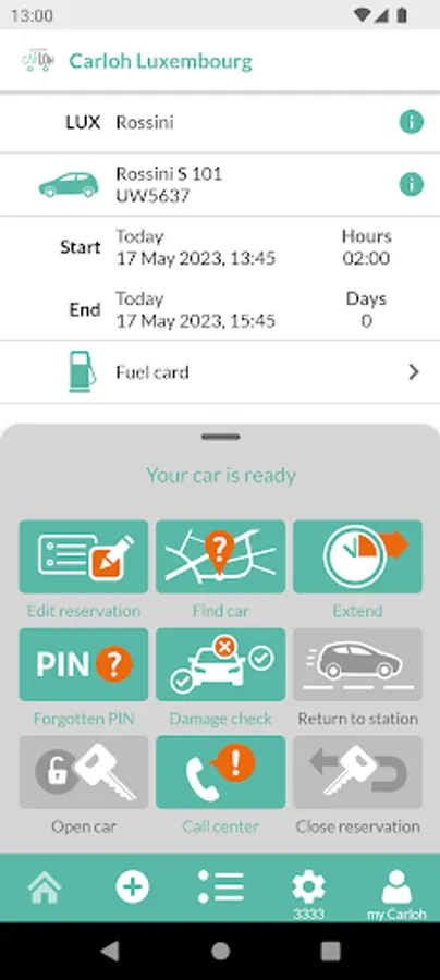 Use the app to evaluate the state of your car at the start of your trip. This evaluation will be directly forwarded to our Carloh service staff. In case of severe defects or damages please immediately contact the Carloh reservation service by phone.