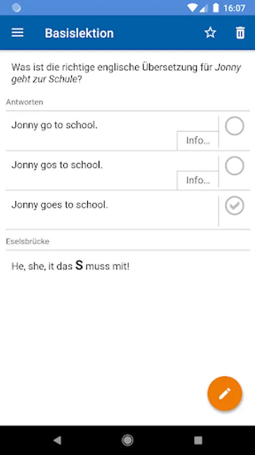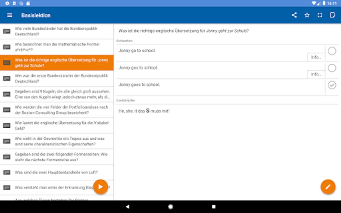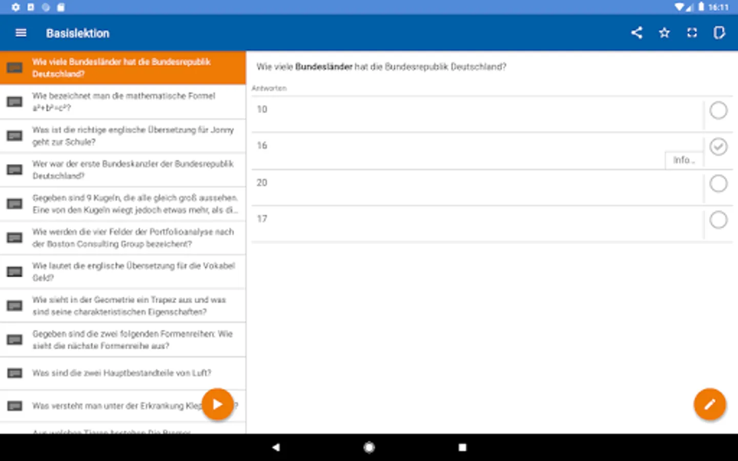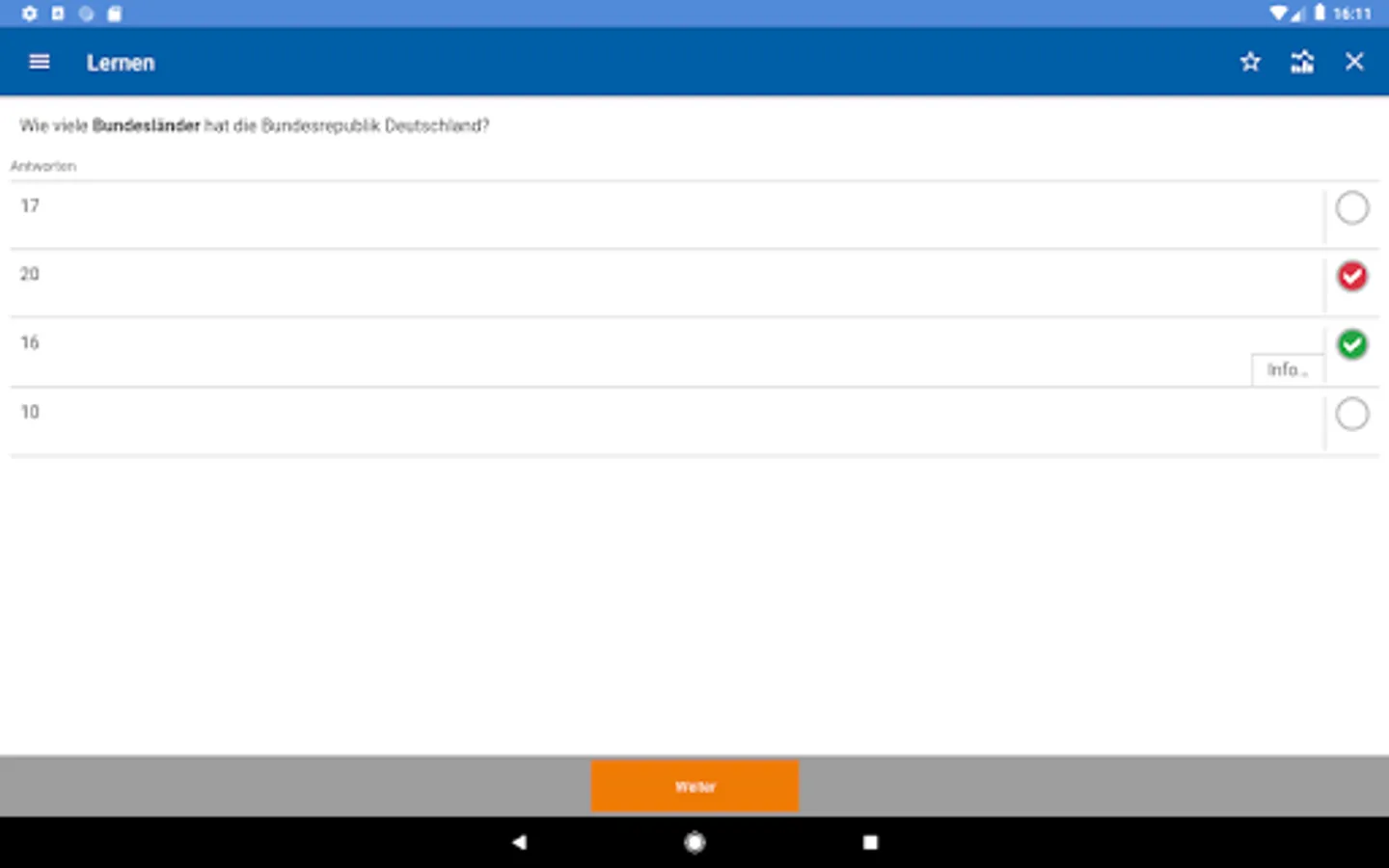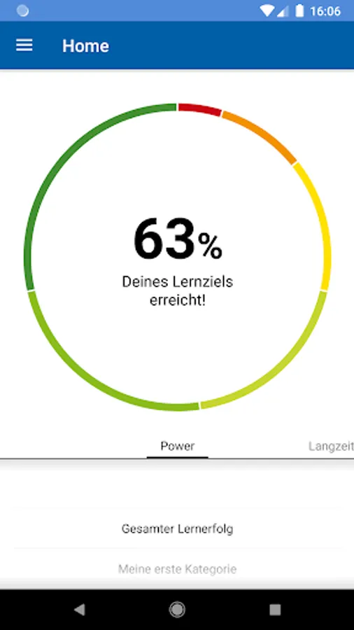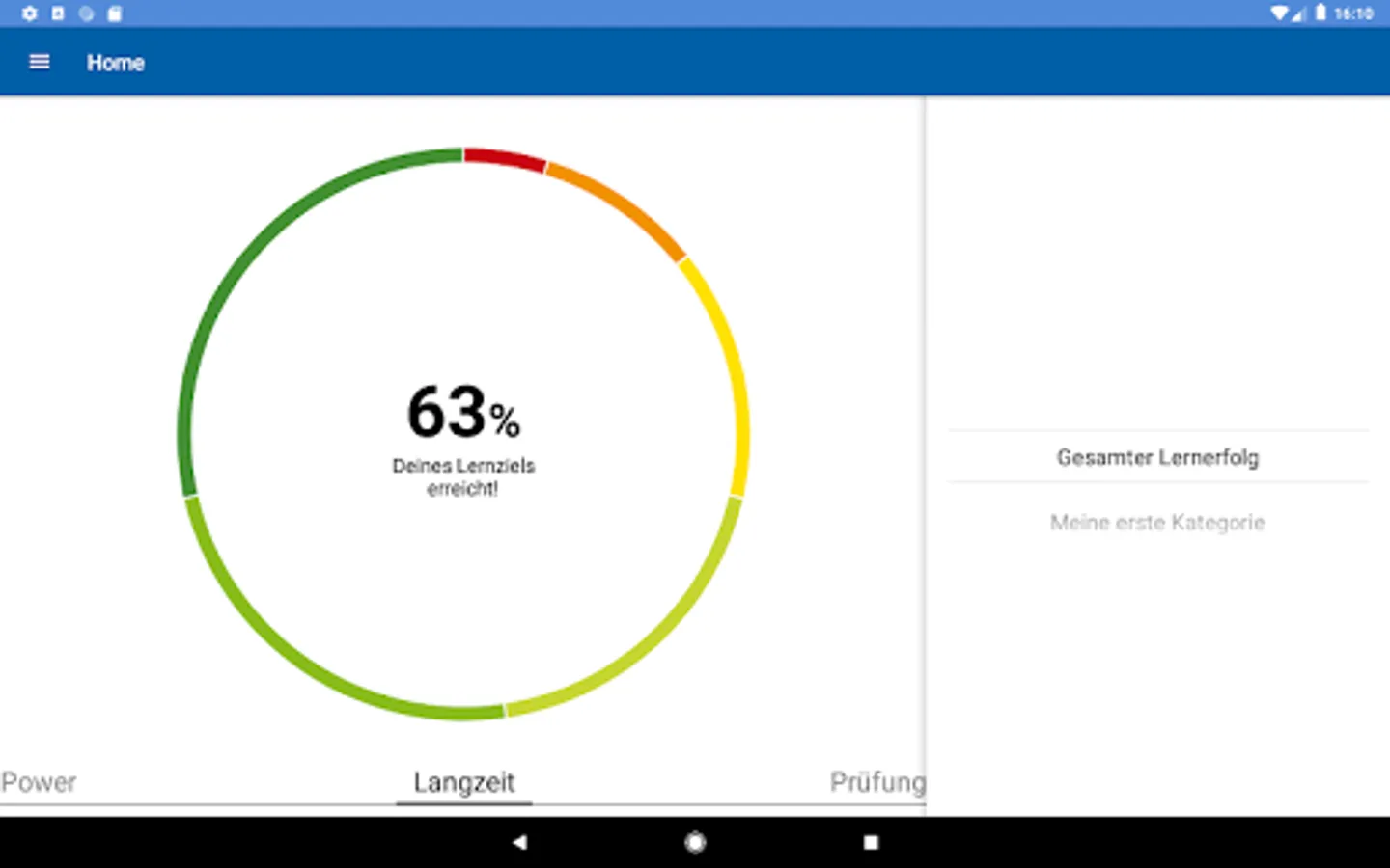 By saving your learning status and the offline feature of the application, your learning content is always available to you and adapted to your learning progress. You'll be helped by an algorithm that takes your learning needs into account so you can learn the content that is not that easy for you. Among other things, you can prepare yourself for an upcoming exam (exam mode) or specifically train your long-term memory (long-term memory mode) as well as your short-term memory (power mode).