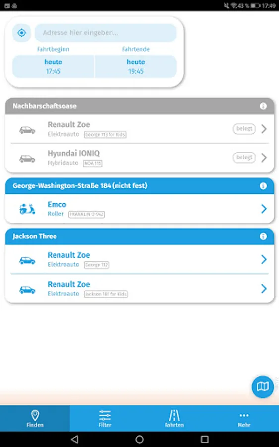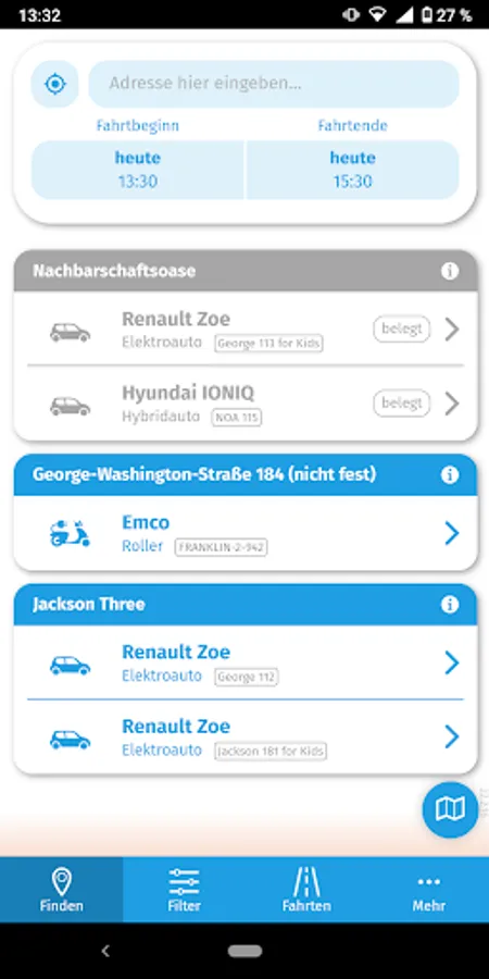 FRANKLIN Mobil is a car sharing company in the Benjamin Franklin Village in Mannheim. With us you can leave your second car and comfortably book and drive e-cars and e-scooters. After registration and driver's license check, you can book the vehicles using the app or the web, then open them using the app or a map and drive off.
