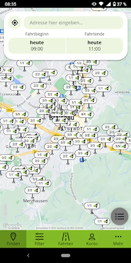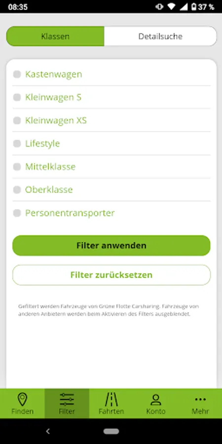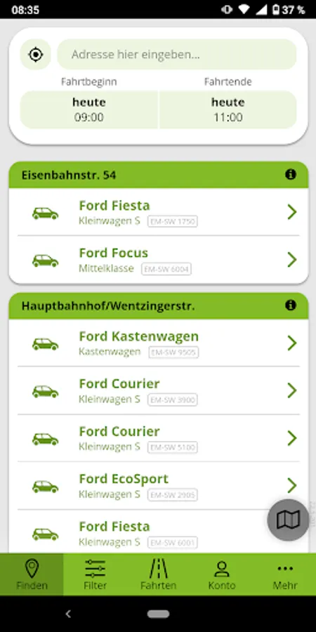 Hundreds of cars within reach. With the Green Fleet car sharing app, you always have a suitable car in and around Freiburg. We have the right mobility solution for every purpose - from small cars to vans. Simple, mobile, flexible.