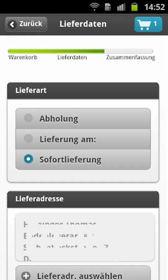 In the cart you can get your desired item, the respective current availability with the delivery date. In addition, you will see your personal purchase prices. You choose whether the items of the shopping cart to your home address, delivered on any construction site or for pickup in a branch is to be provided.