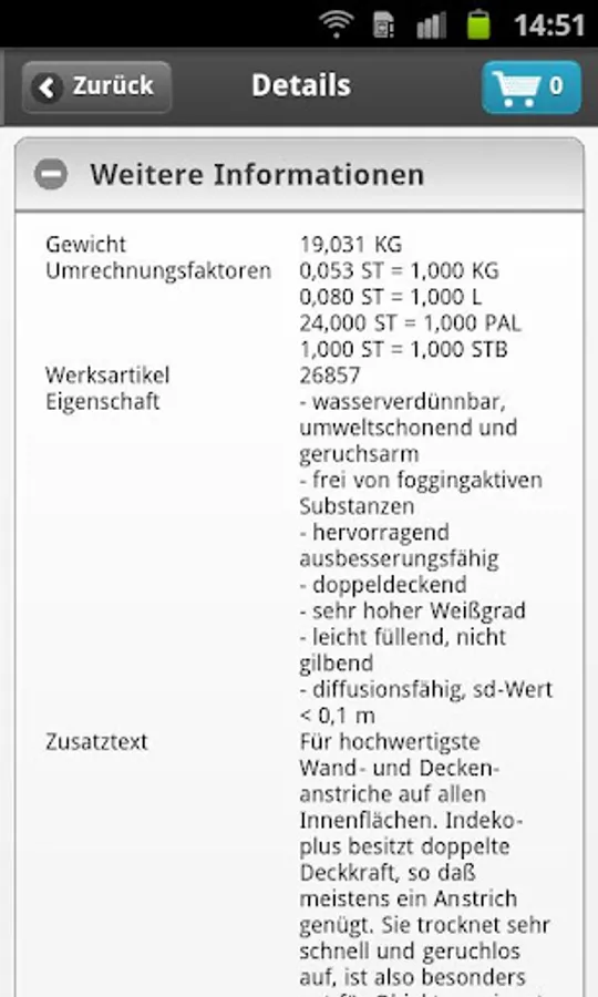 Immediately take advantage of the benefits of convenient ordering via your smartphone. In the online shop "e-sales direct" you can work around the clock on the go to place orders, prices and availability, query and retrieve a variety of other information. With the integrated search function you can quickly access the entire range of our major trading partners (paints, plasters, varnishes, lacquers, insulation, floor coverings, home textiles, tools and more).