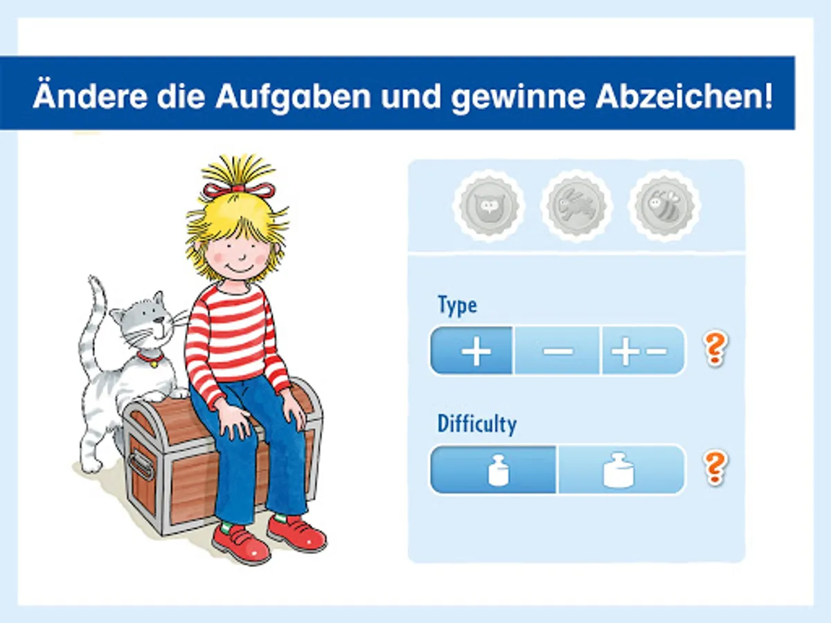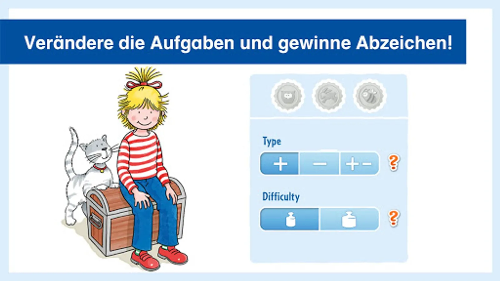 • variable Aufgabenmodi and difficulties account for the calculation and thus learning progress of children, enabling continuous practice throughout the first school year.