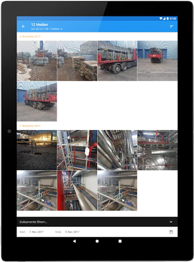 The construction documents done with photos, because a picture is worth a 1000 words. The photo can be given a title and it will be stored together with the time stamp and the associated employee information directly into the provided folder with project reference.