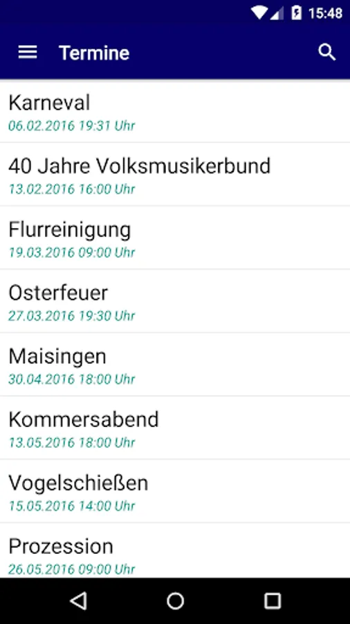With this app you can view our dates and submit it directly into the calendar of your smartphone.