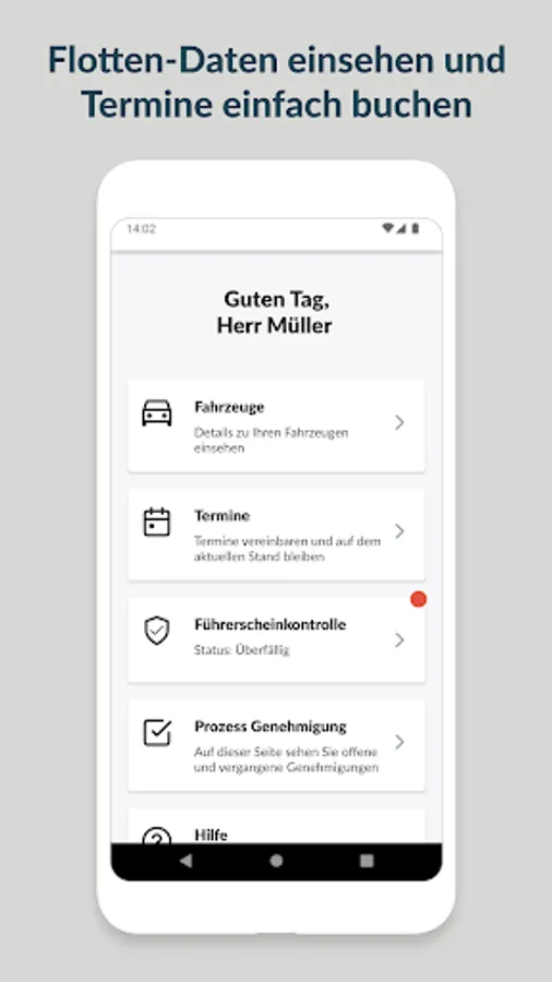 For drivers: Is your fleet managed with the 360° ECO system? Use the app for your driver's license check to view data about your vehicle, record mileage, process permits and book appointments for your tire change, for example.
