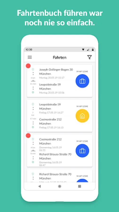 As a supplement or replacement for your manual driver's logbook - the digital CARSYNC driver's logbook. Benefit from the uncomplicated recording of business or private trips, independent of time and location with your smartphone, straightforward and fast. With the use of driver's logbooks, private trips no longer have to be taxed at the tax office as a lump sum via the 1 percent rule. Depending on the vehicle model and route profile, using the driver's logbook can yield a tax advantage of over 2,700 euros. You also receive information about open tasks. Home, work and family trips can be recorded. Detours are automatically detected and declaration as a mixed trip becomes possible. Optional: Maintenance of the digital driver's logbook via Internet browser at app.carsync.de/