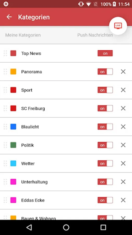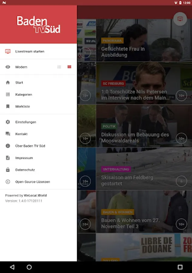 We deliver the theme - but you can make our app according to your wishes, disable individual category or rearrange the order. Stay with Baden TV South always very close to your area - no matter where you are grade!