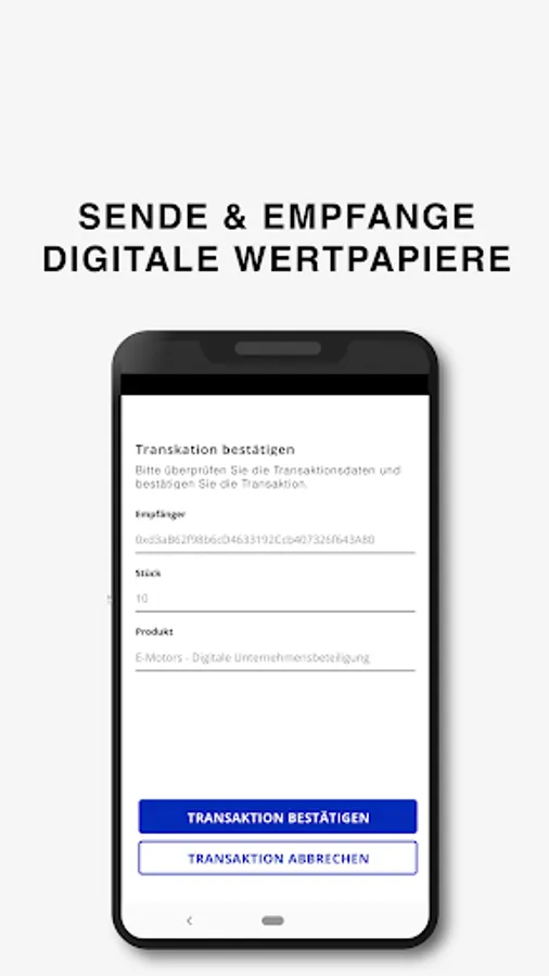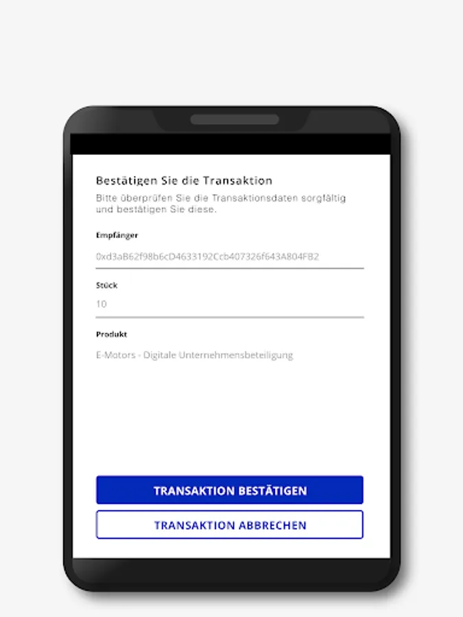 The Eterna Safehold App provides an extra layer of security for the digital securities held in your Eterna account. With this Eterna Safehold App app as a second factor, you confirm the secure transfer of digital securities.