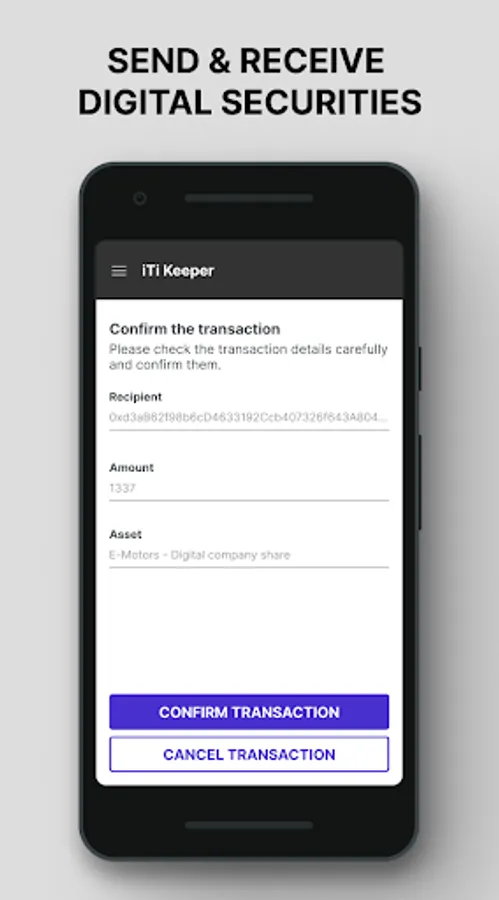 The iTi Keeper App provides an extra layer of security for the digital securities held in your immo - Token - invest account. With this iTi Keeper App as a second factor, you confirm the secure transfer of digital securities.