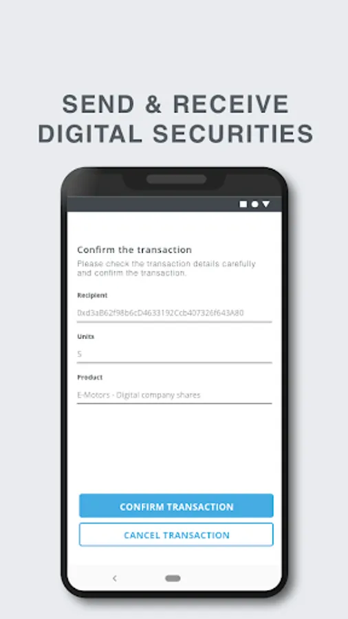 A secure key is generated on your smartphone that is used to encrypt the transfer. Once your smartphone is linked to your Cashlink account, third parties cannot access your digital securities.