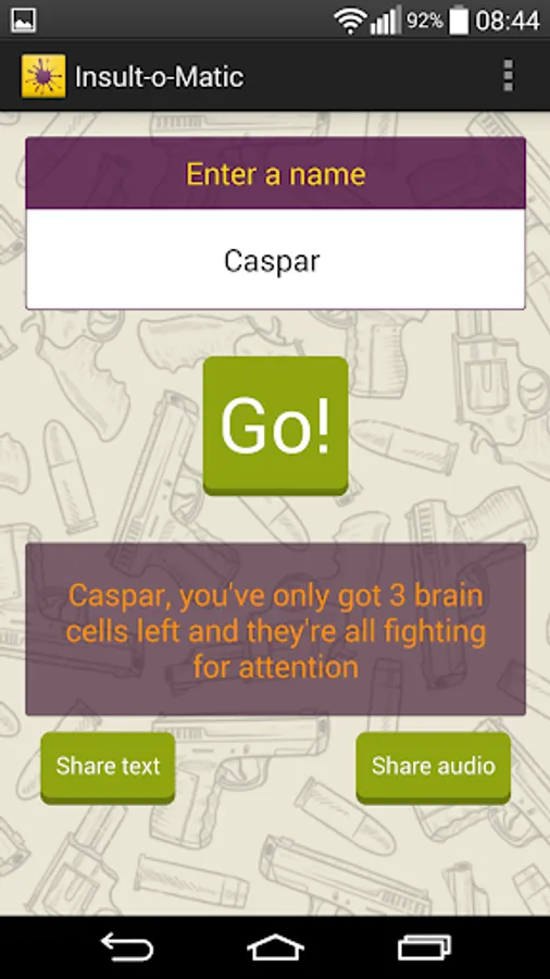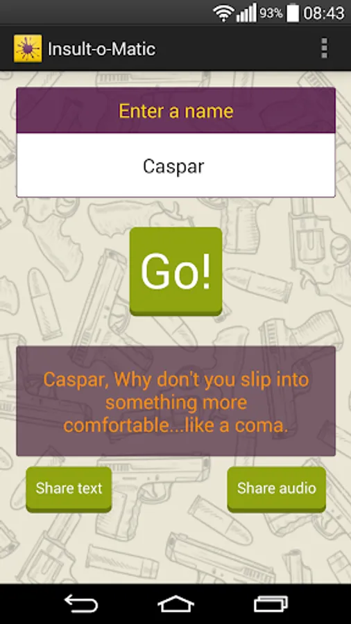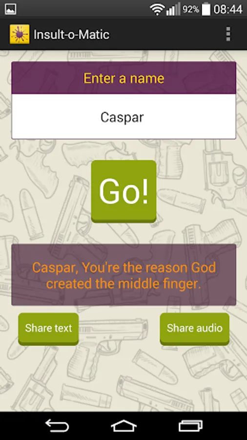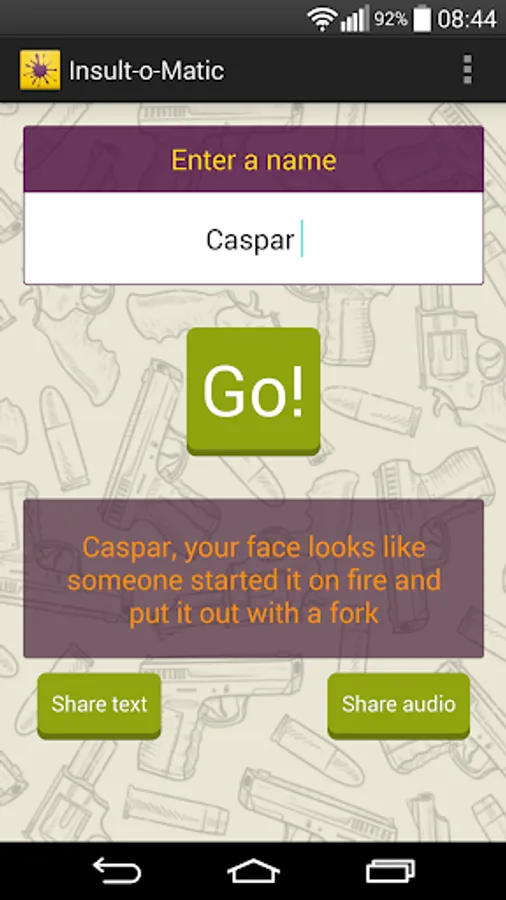 • Simply enter the name of the person you want to insult and press Go!