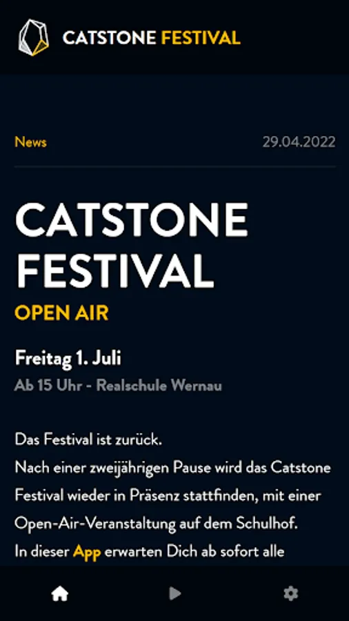 With the Catstone Festival App you get all information about the festival directly on your smartphone. You can receive notifications of new videos and content if you wish.