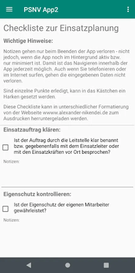 This app complements the book "Psychosocial Emergency Care (PSNV) - Practice Book Crisis Intervention" by Alexander Nikendei.