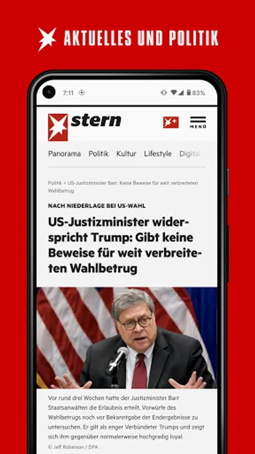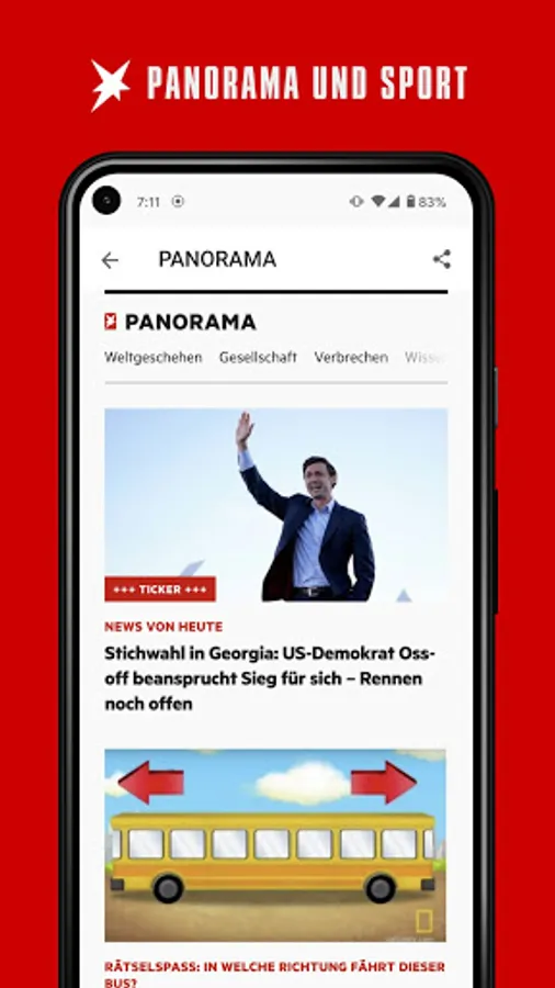 The stern app offers a unique variety of topics with daily news from 16 interesting sections. Here you can read exciting articles from politics, panorama, economy, culture, digital, lifestyle, sports, family, enjoyment, health, cars and travel. With the optional push notifications, you will be notified of all top reports and will not miss any headlines.
