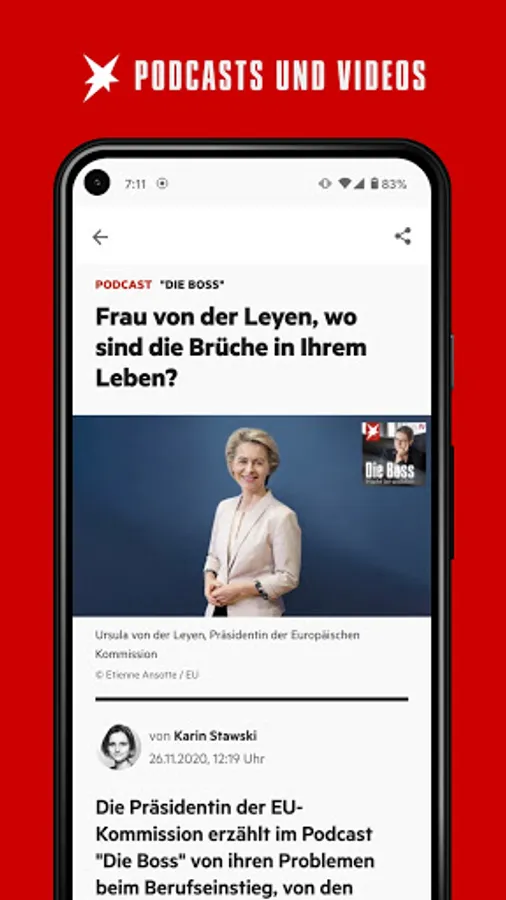 In the stern app, just like on the stern.de website, we report on the most important news of the day and take clear positions. We tell stories very close to life - in texts, photo series and videos. The best of the social networks also guarantees good entertainment.