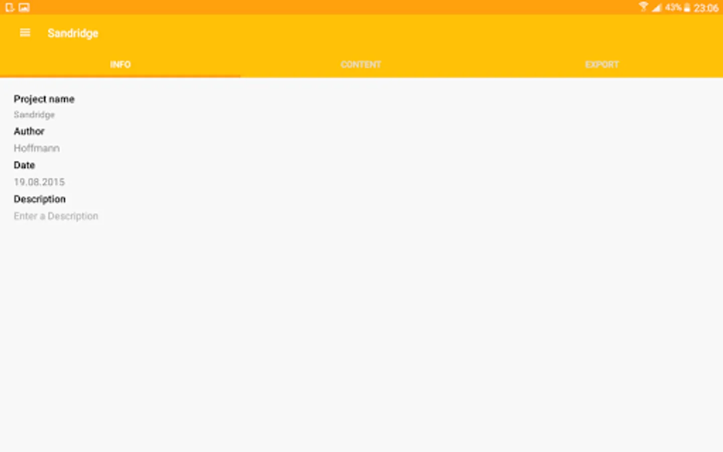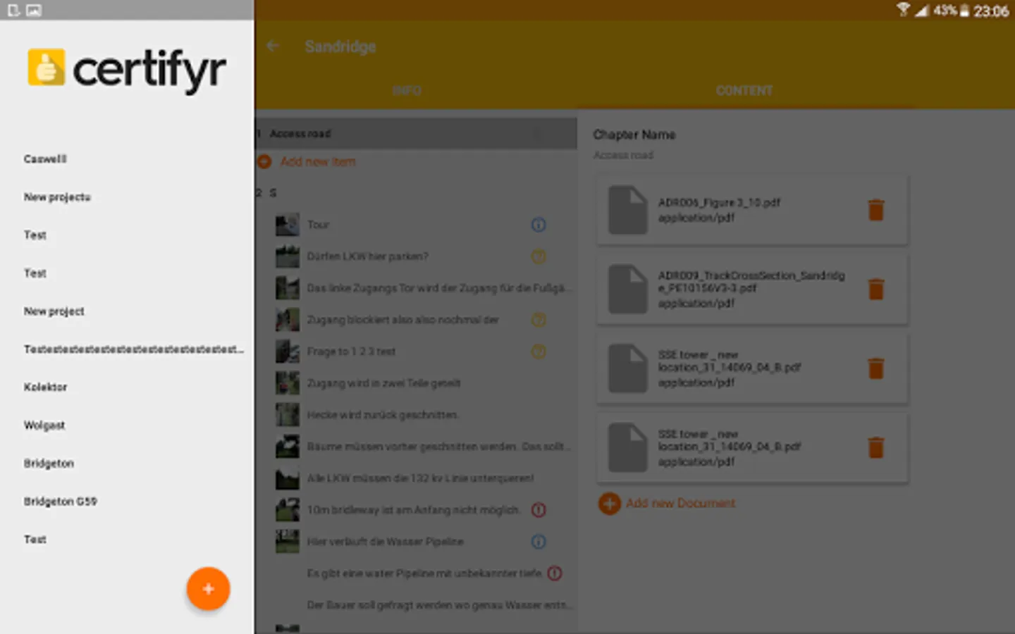 The app simplifies the execution of approvals and the subsequent creation of summary reports. Here, the term "approval" describes the process of inspection of a construction project, comparing it with the nominal condition, the evaluation of individual test points and the final report of the listings. These decreases or assessments can be carried out in all the areas where projects during the construction process, after completion or at defined periods be subjected. Target customers are people who visit, test and evaluate construction projects. These include primarily construction managers, project managers and evaluators. Also the final customer, technical advisers and the heads of construction companies themselves. By using the App the user first creates a new project and deposited with project-specific data. Then he would create any number of items. For this purpose, the user takes a picture and comments and rates this. The GPS coordinates are automatically saved. The user can at any time delete the collected images, comments and reviews. After finishing the site visit the user would export the data as a word file.