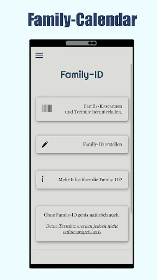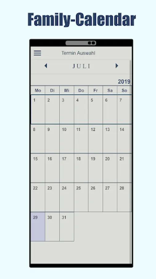 With the help of the Family-Calendar it is possible to exchange one's own appointments with those of his friends or family online and have everything at a glance in the overview.