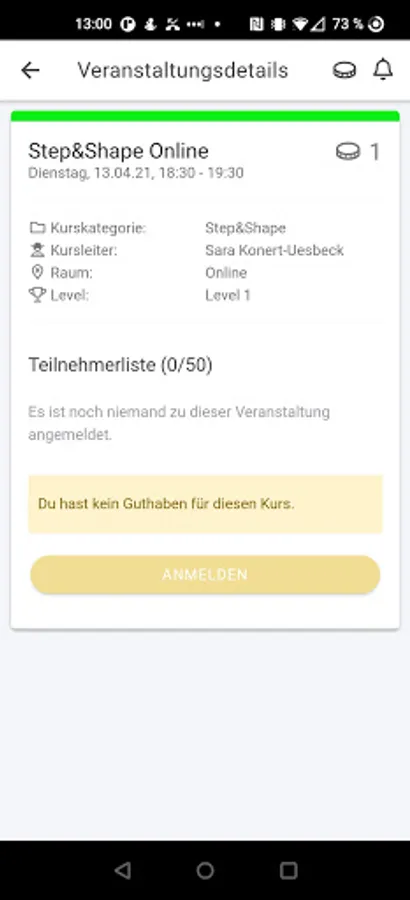 You will be informed about all news, such as a sudden course cancellation or moving up to a course from the waiting list, directly in the app.