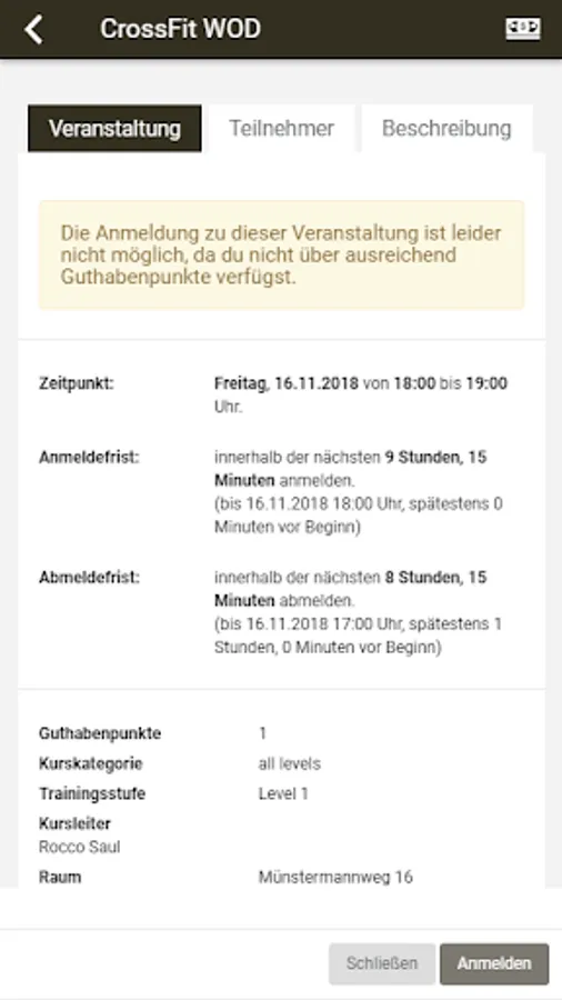 App to sign up for CrossFit, MMA and Open Gym at CrossFit Münster.