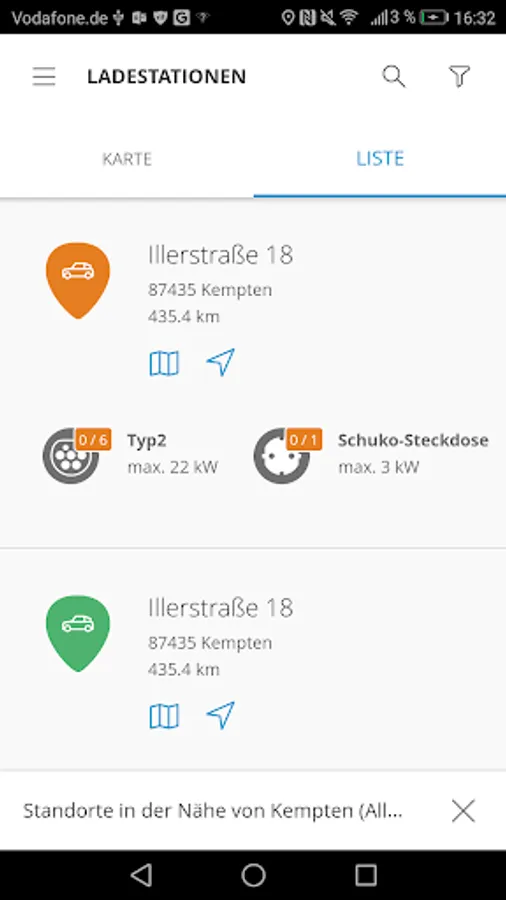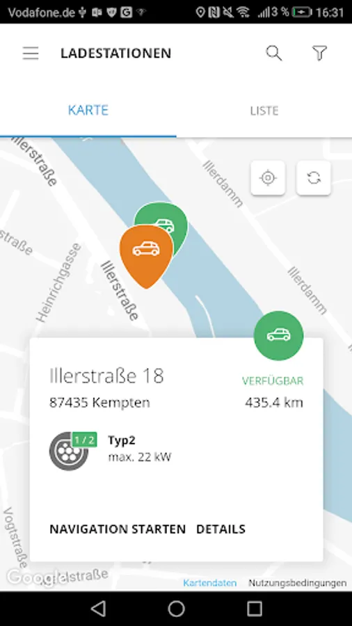 - live display of all available charging points of the Allgäu current cooperation and charging points connected roaming partners, depending on the contract
