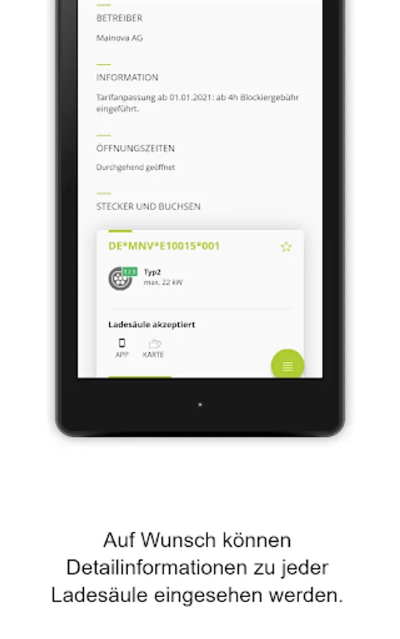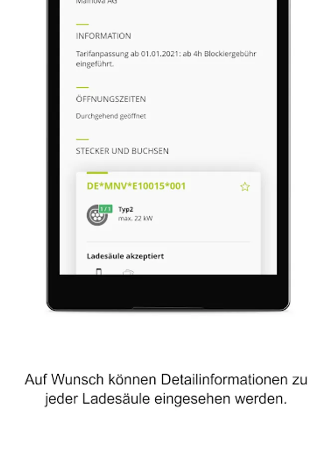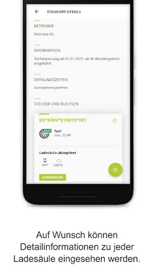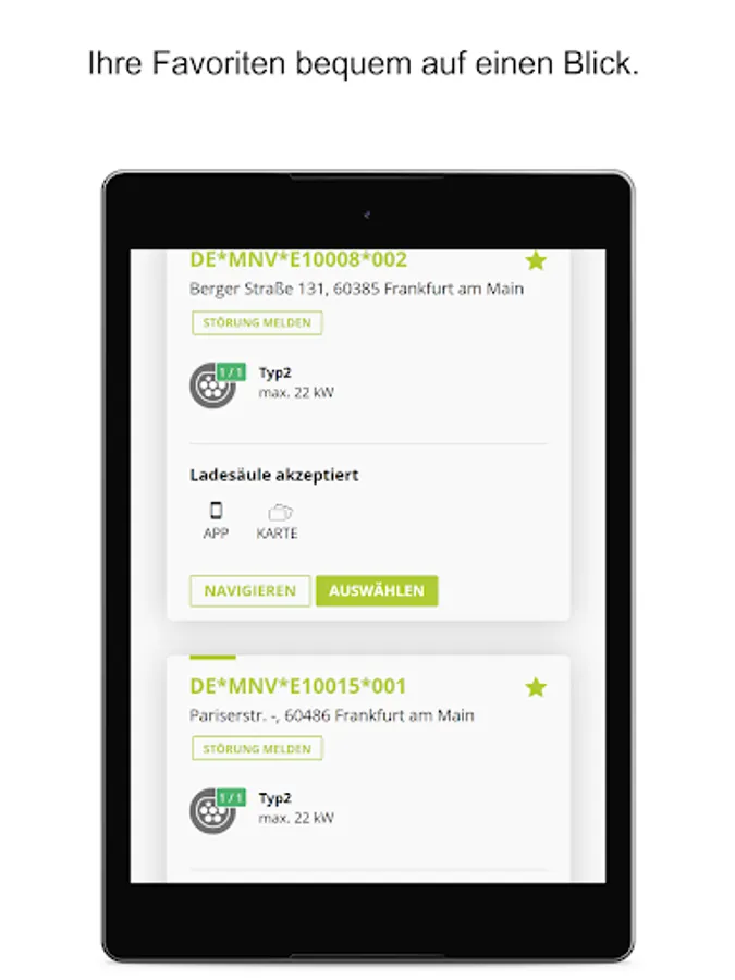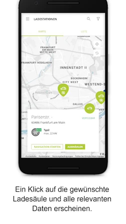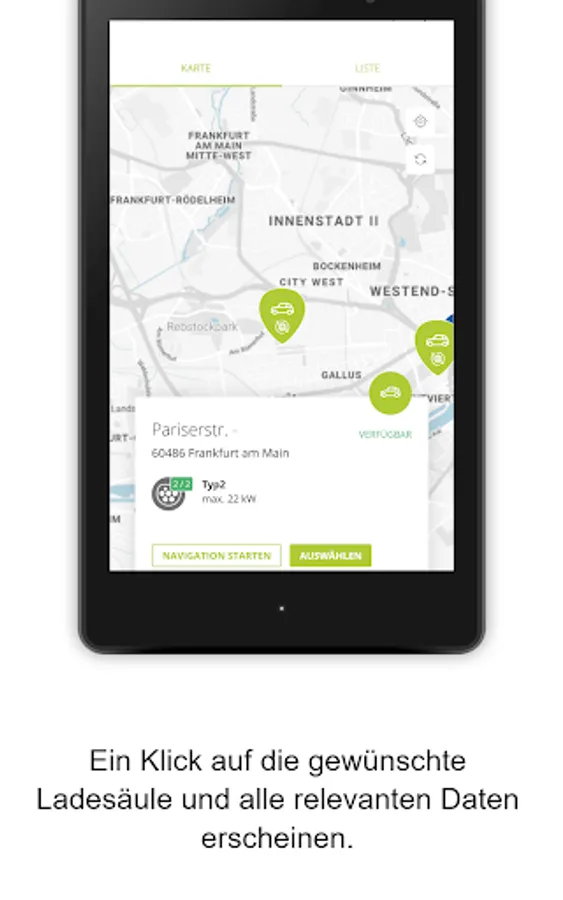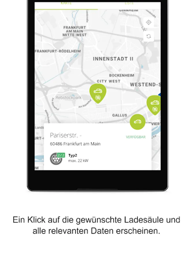 With the help of the overview map, you can quickly find the right charging station near you. The overview map shows you all the charging points that are accessible to you. You can easily activate this from the app. You can also see their current availability and you receive information on possible malfunctions.