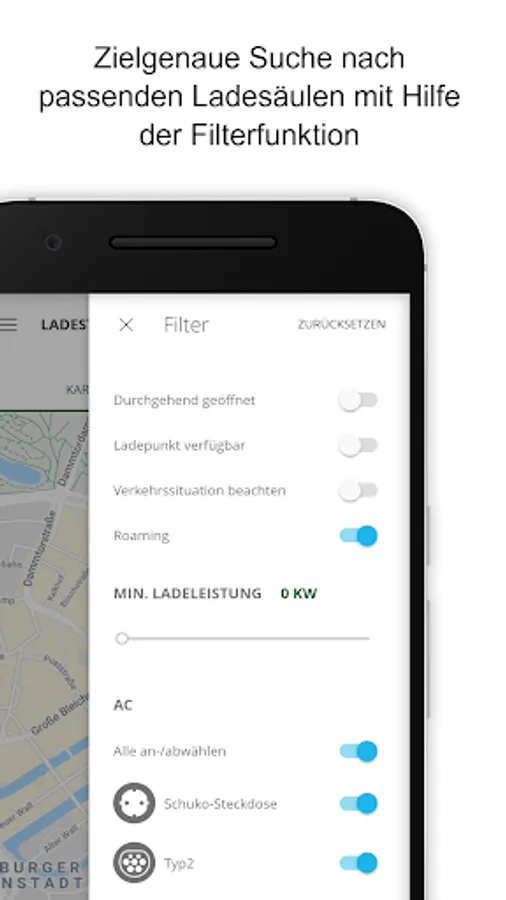 Battery empty? Find a free charging station nearby. Filter by city, zip code or by charging station number, availability, capacity or plug type. Have free charging stations displayed as a list or on the map and navigate there directly with your smartphone.