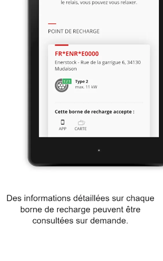 The Enerstock application will allow you to charge your electric vehicle through our network of terminals.